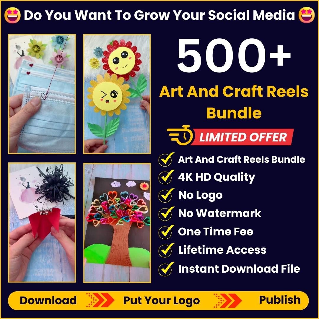 SAVE TIME AND GROW YOUR SOCIAL MEDIA INSTANTLY WITH THESE READYMADE 9000+ ART AND CRAFT REEL BUNDLES CREATED BY MASTERS AND EXPERTS!