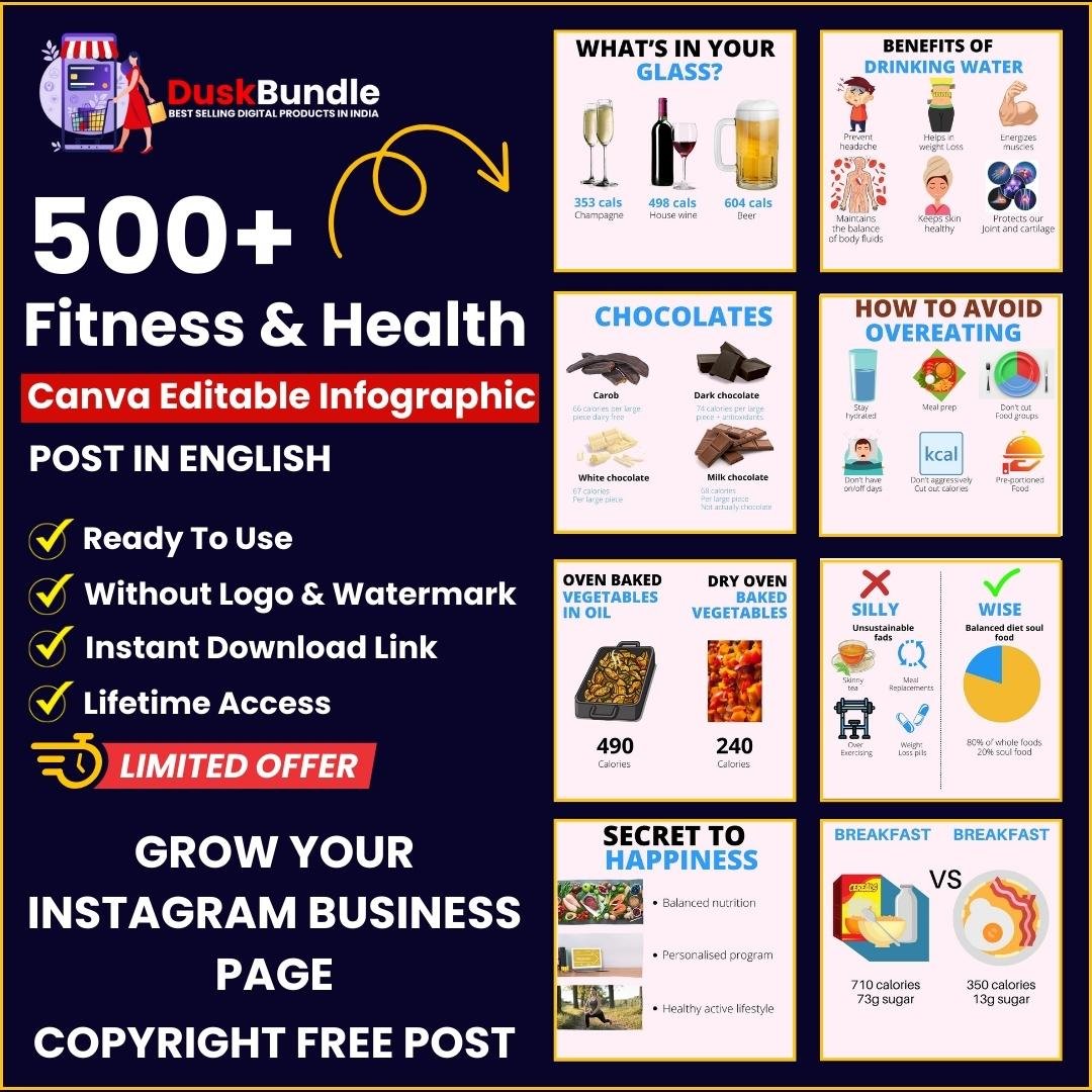 SAVE TIME AND GROW YOUR SOCIAL MEDIA INSTANTLY WITH THESE READYMADE 500+ FITNESS AND HEALTH INFOGRAPHIC POSTS CREATED BY MASTERS AND EXPERTS!